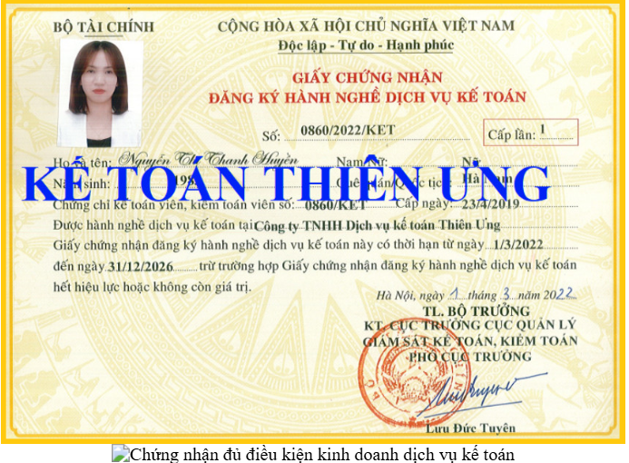 - Được Bộ Tài Chính cấp phép hành nghề Dịch vụ kế toán Thuế