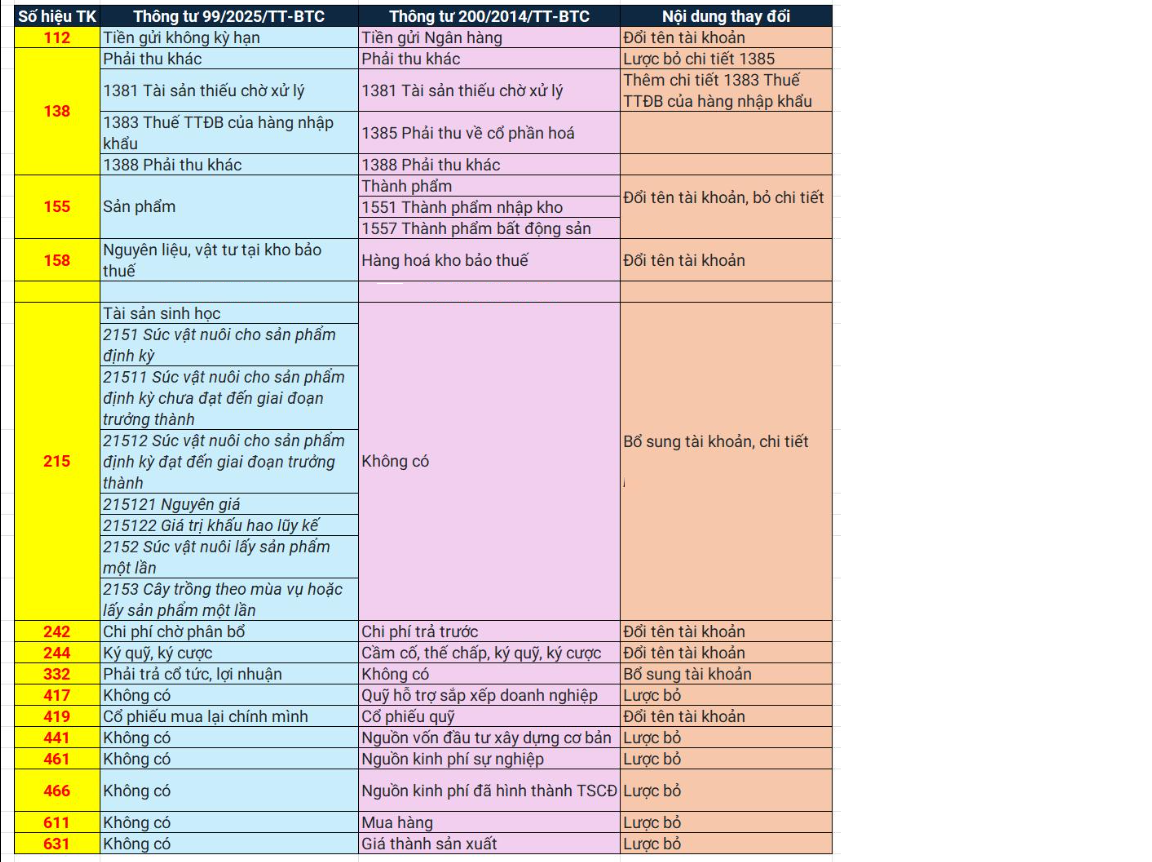 SO SÁNH TÀI KHOẢN TT 99/2025 VÀ TT 200/2014