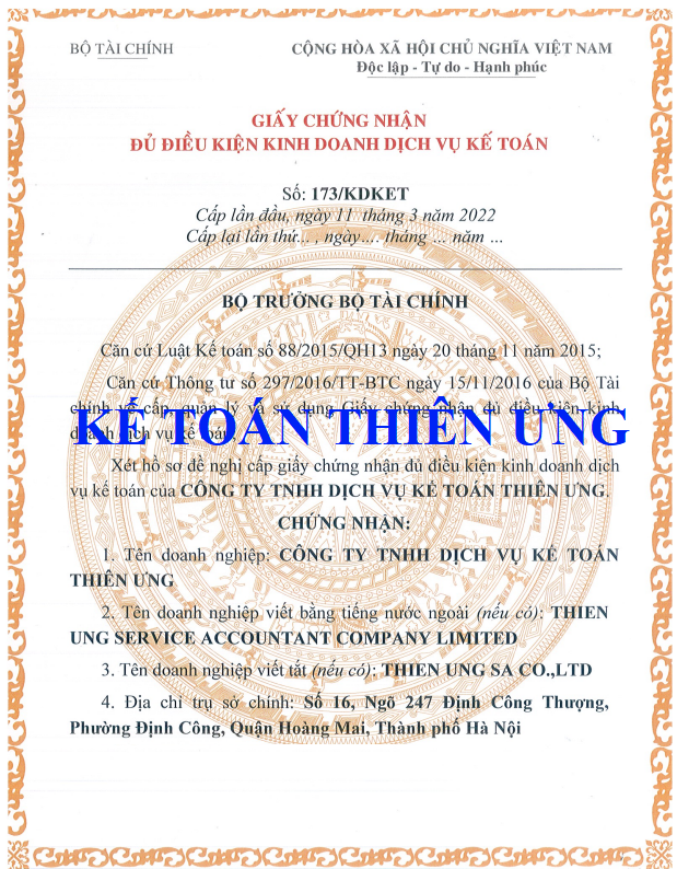 Công ty Kế Toán Thiên Ưng – chuyên nhận làm Dịch Vụ Kế Toán Thuế trọn gói cho mọi loại hình doanh nghiệp tại Hà Nội Kế Toán Thiên Ưng là một doanh nghiệp hàng đầu hoạt động lâu năm trong lĩnh vực “Đào tạo kế toán thuế thực hành thực tế” và làm “Dịch vụ kế toán – hoàn thiện sổ sách – lập báo cáo tài chính cuối năm – quyết toán thuế” cho rất nhiều Doanh nghiệp trong nước (đặc biệt là tại Hà Nội).